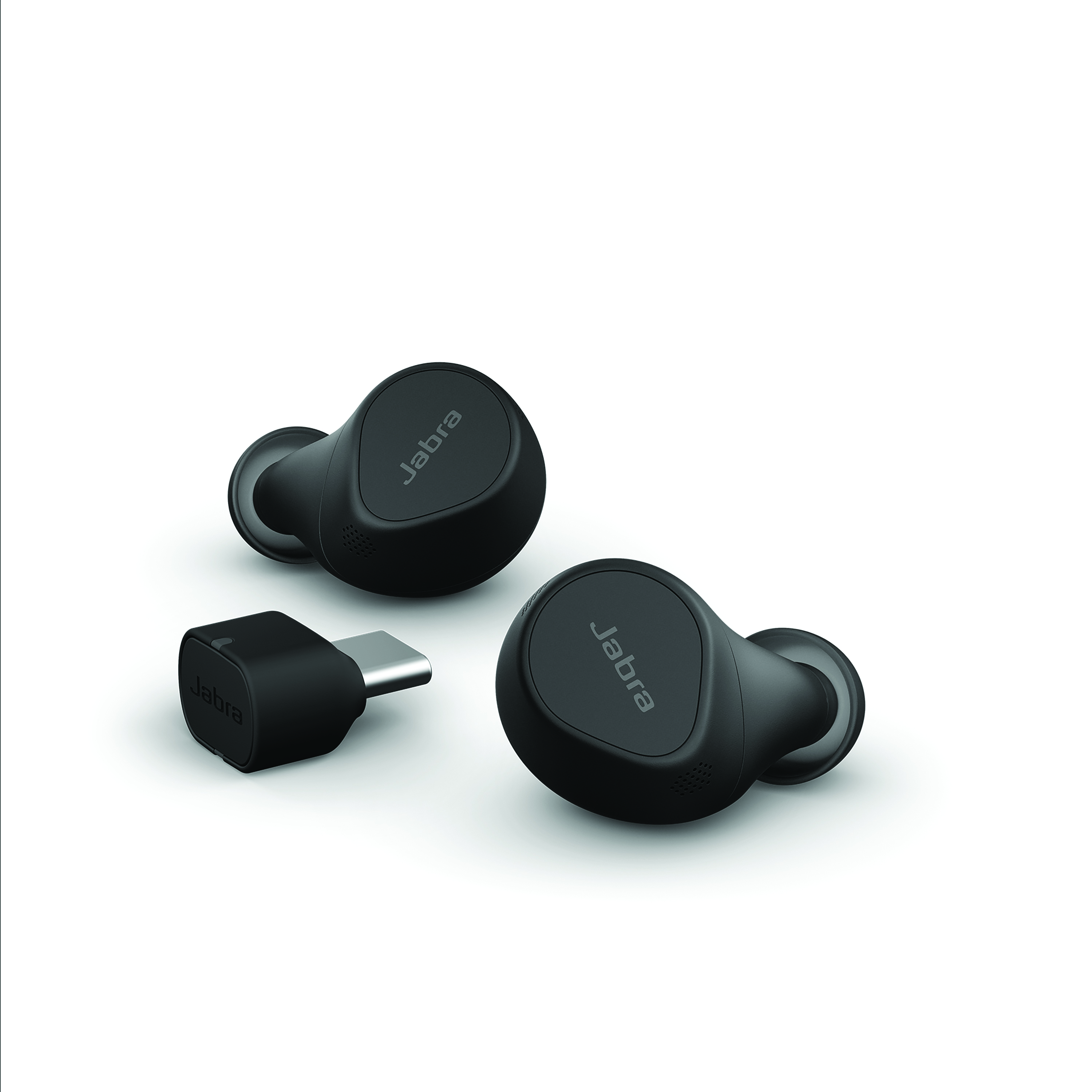 • Contents: Jabra Evolve2 Buds MS, charging case, 3 pairs of EarGels, Jabra Link 380c USB adapter, USB-A to USB-C adapter